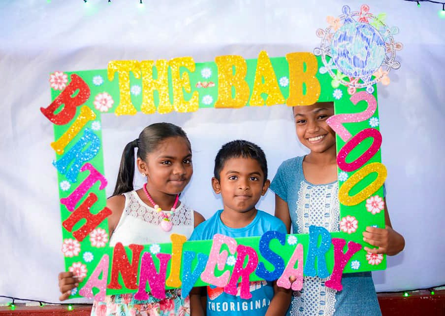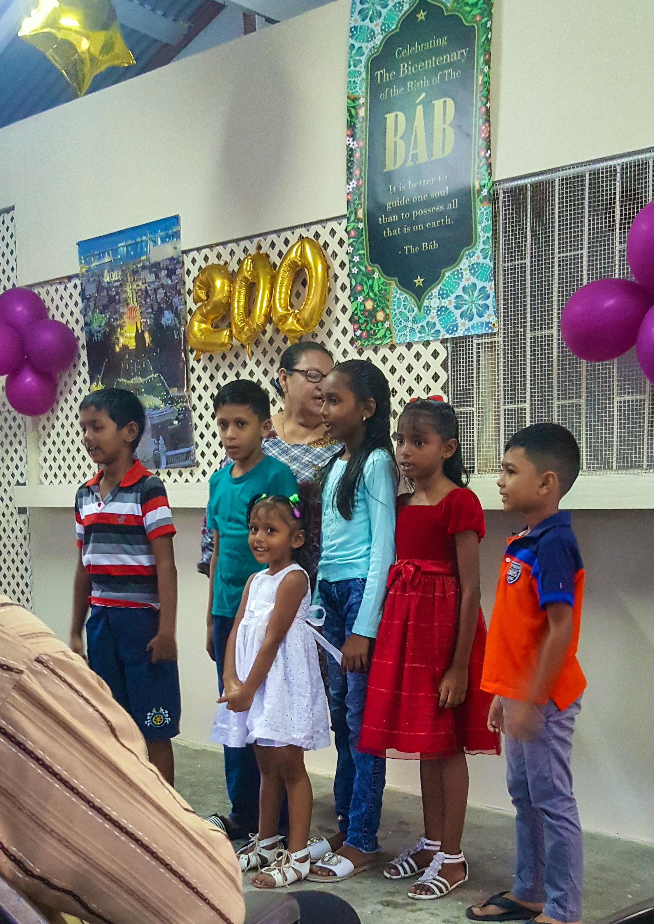 Children and youth along with their parents celebrate the bicentenary of the birth of the Báb in Diamond Village, Guyana.