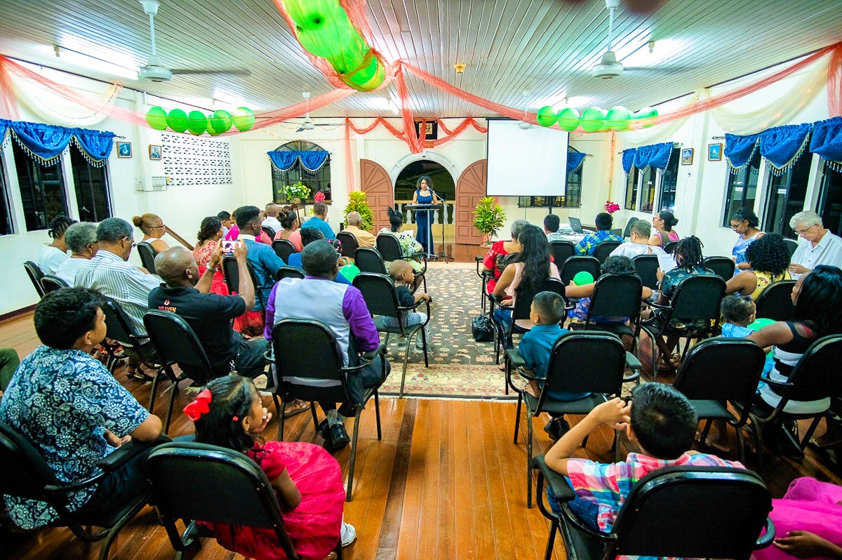 Community members gather for a celebration of the bicentenary of the birth of the Báb in Georgetown, Guyana.